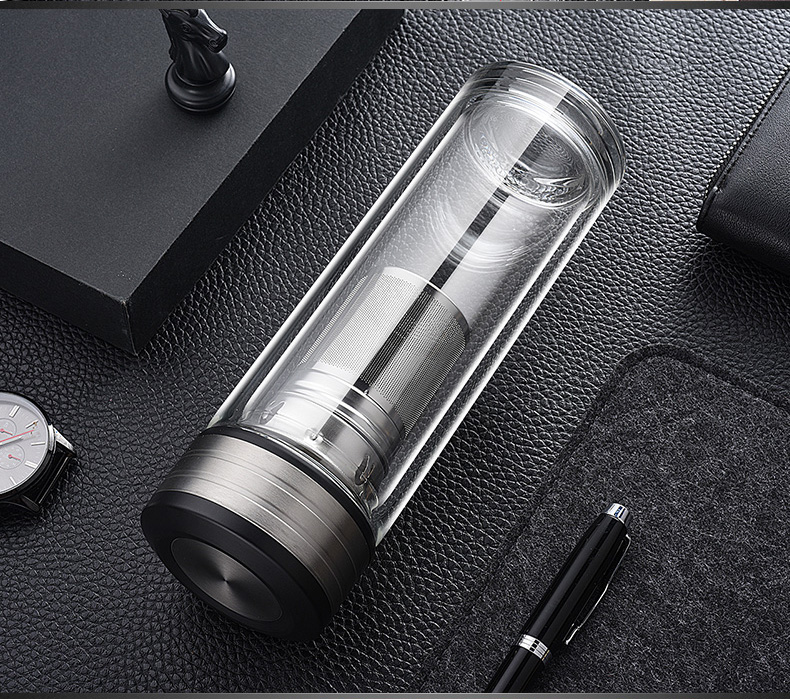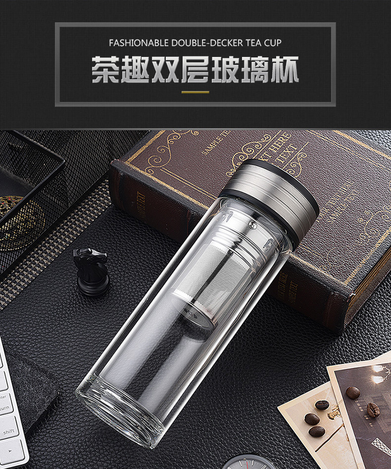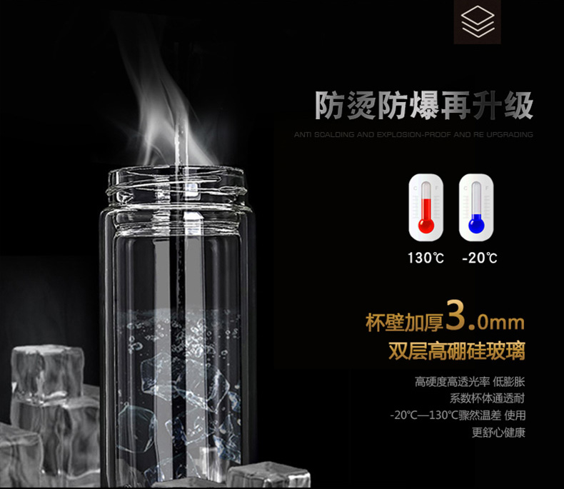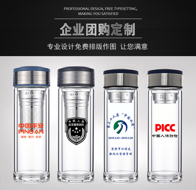 雙層水晶玻璃杯辦公家用泡茶杯耐熱加厚禮品杯子定制刻字印字LOGO