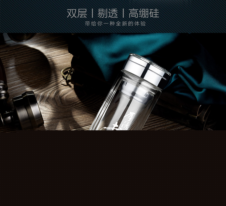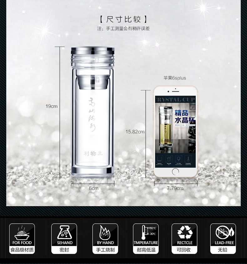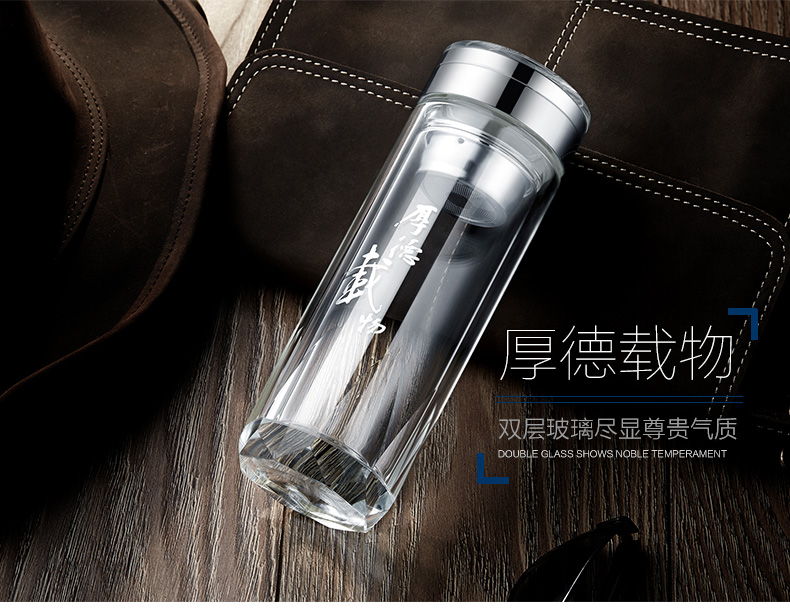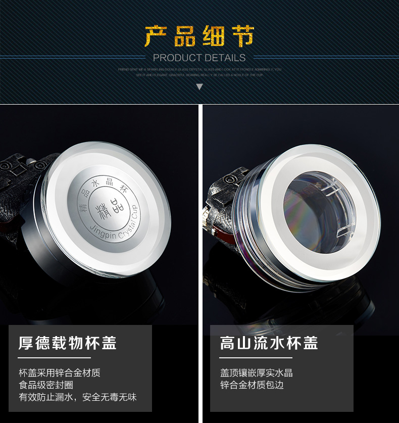 創意雙層水晶高山流水玻璃杯帶蓋茶杯批量訂定制印LOGO