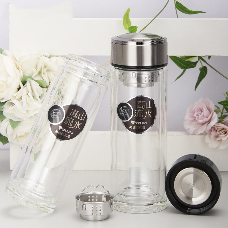 廠家批發(fā)定制LOGO 雙層高硼硅杯 厚底水晶杯