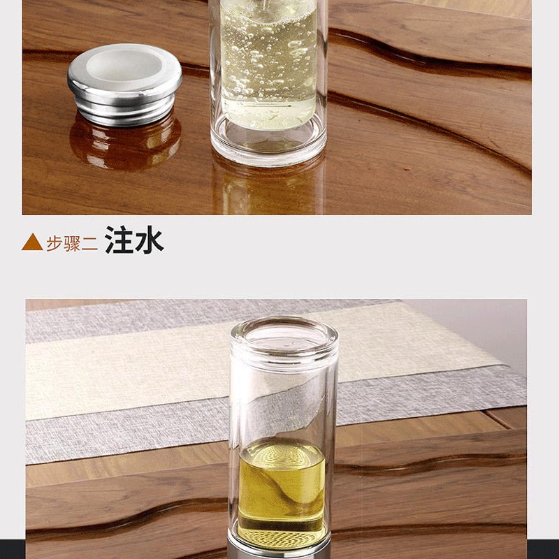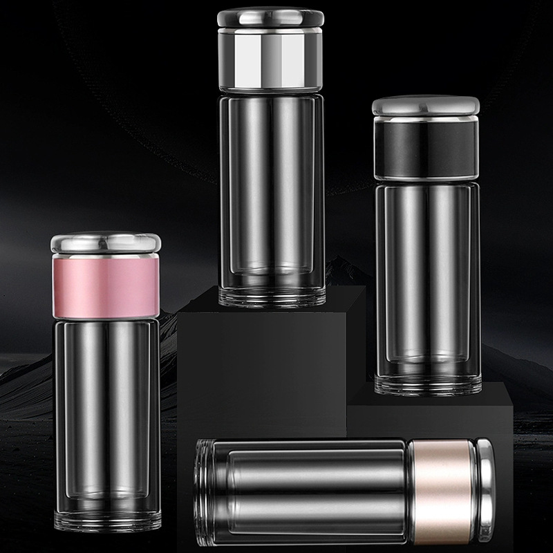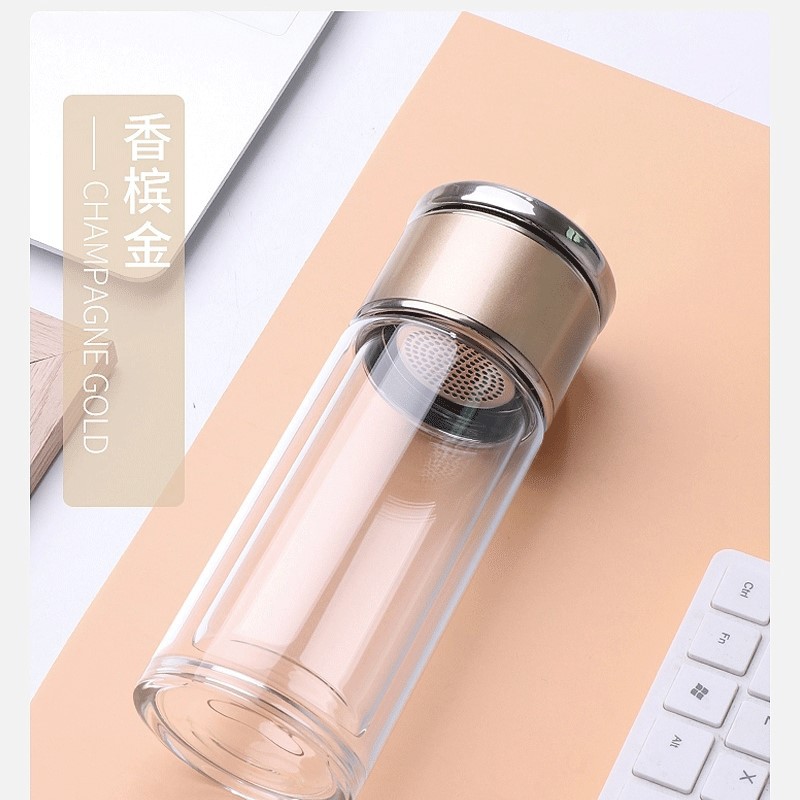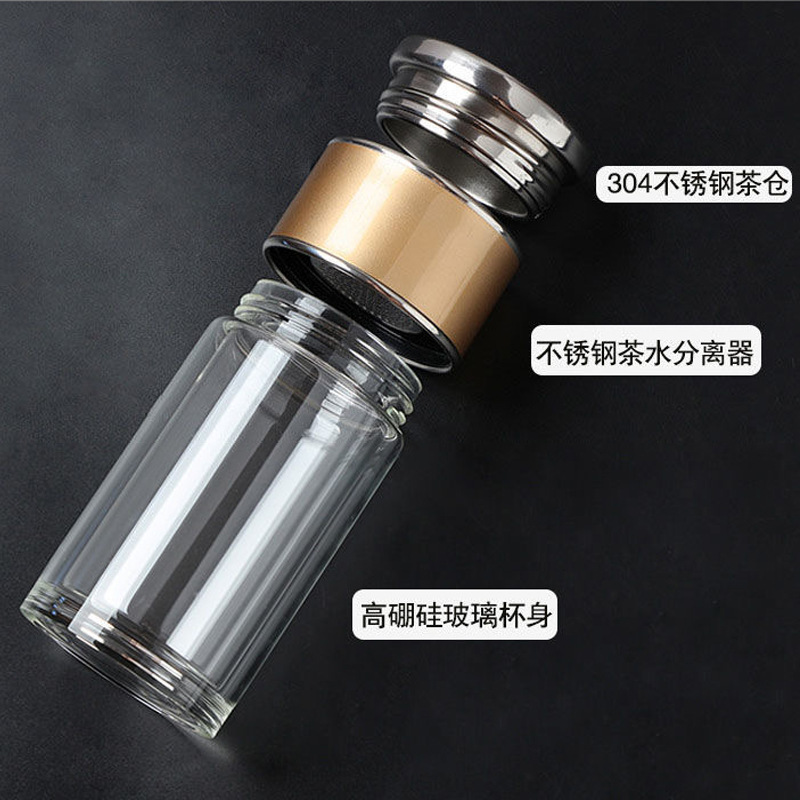 網紅茶水分離杯雙層玻璃杯家用透明玻璃水杯商務禮品茶杯隔熱