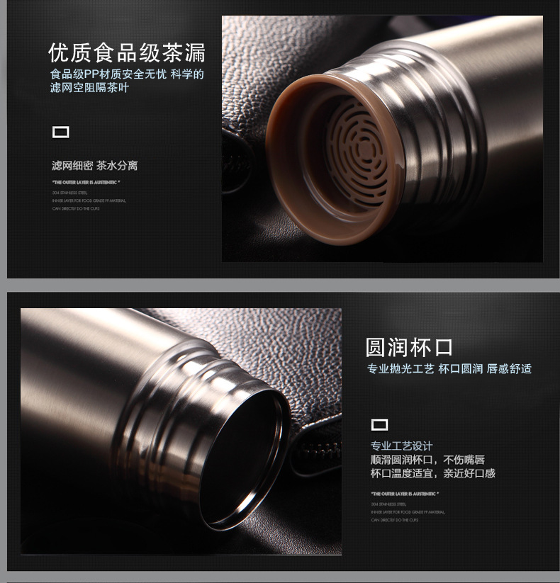 新款304不銹鋼高檔商務(wù)禮品保溫杯男便攜直身濾網(wǎng)茶杯