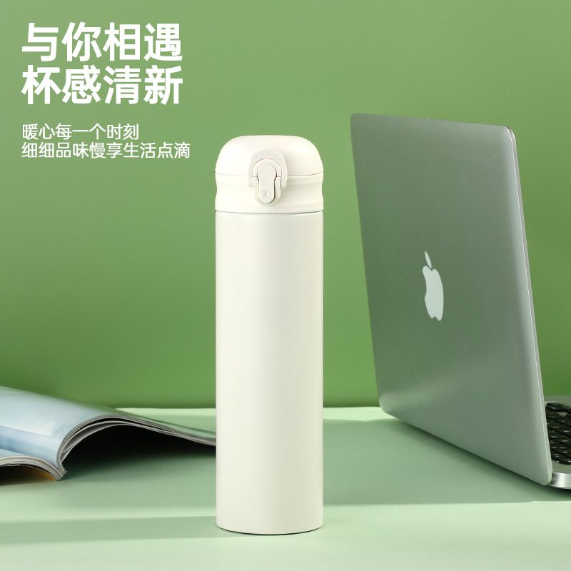 高顏值316彈跳吸管保溫杯男女生鏡面內膽水杯商務車載杯子廣告杯