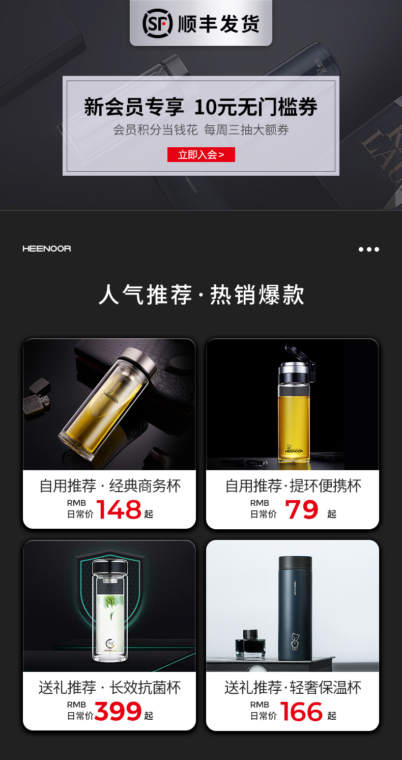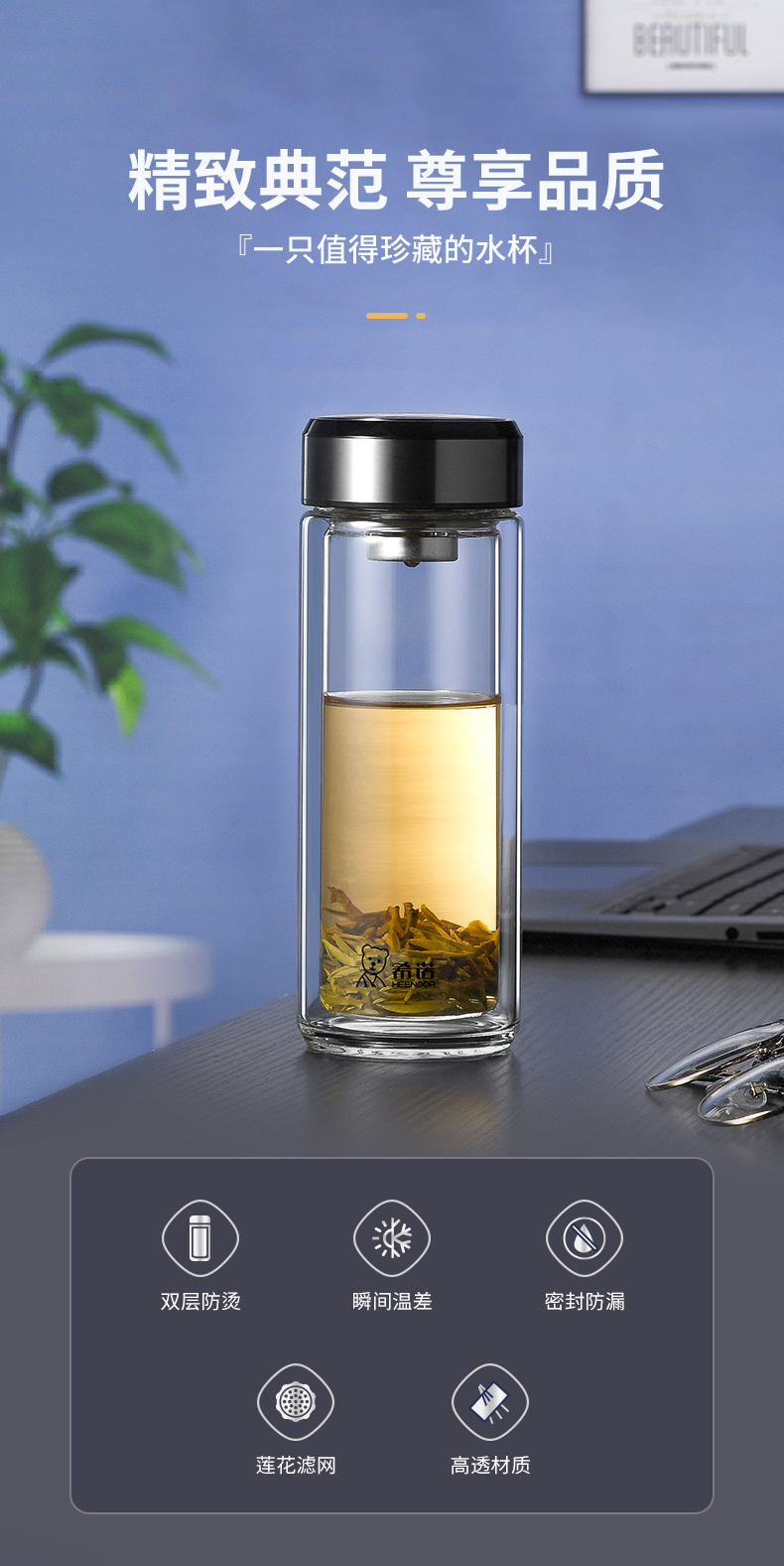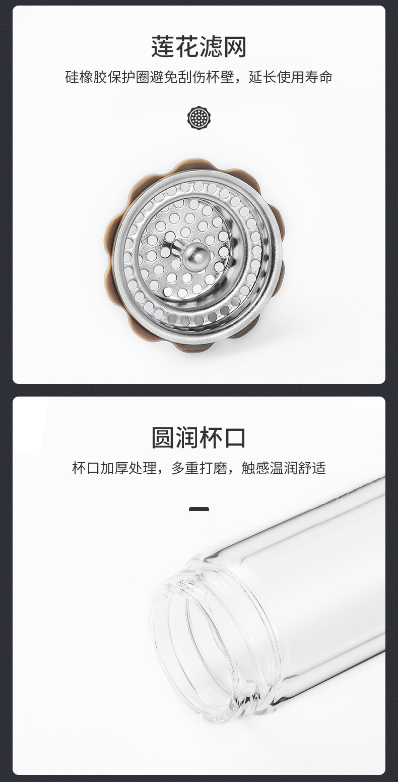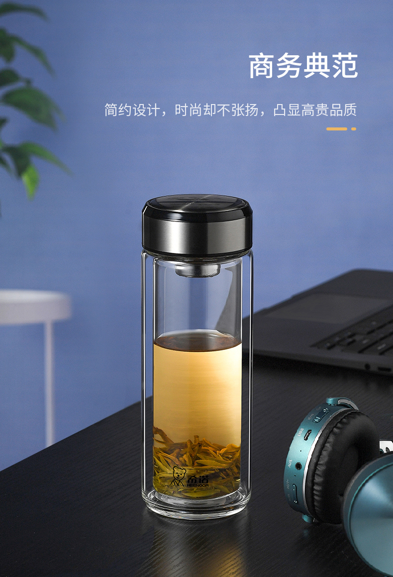 希諾雙層玻璃杯茶水分離水杯男家用透明過濾泡茶杯子高檔送禮商務